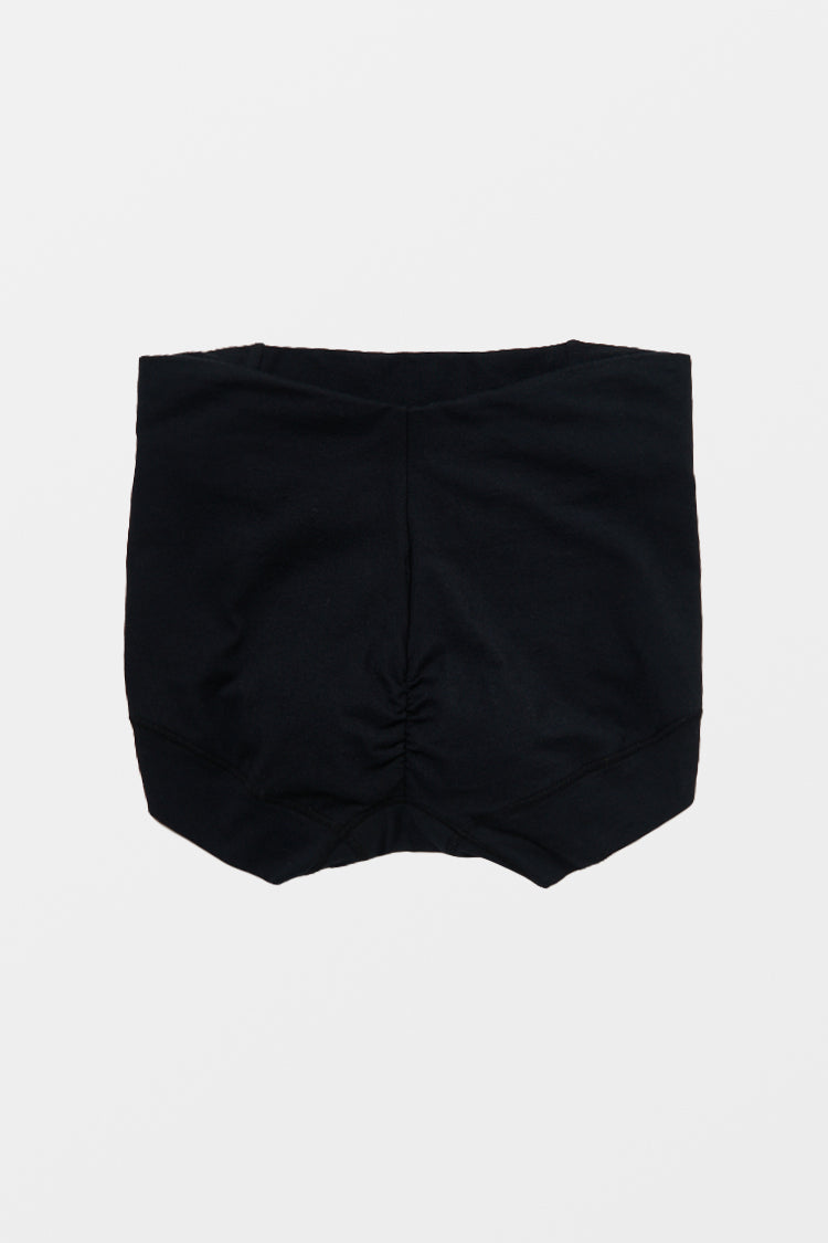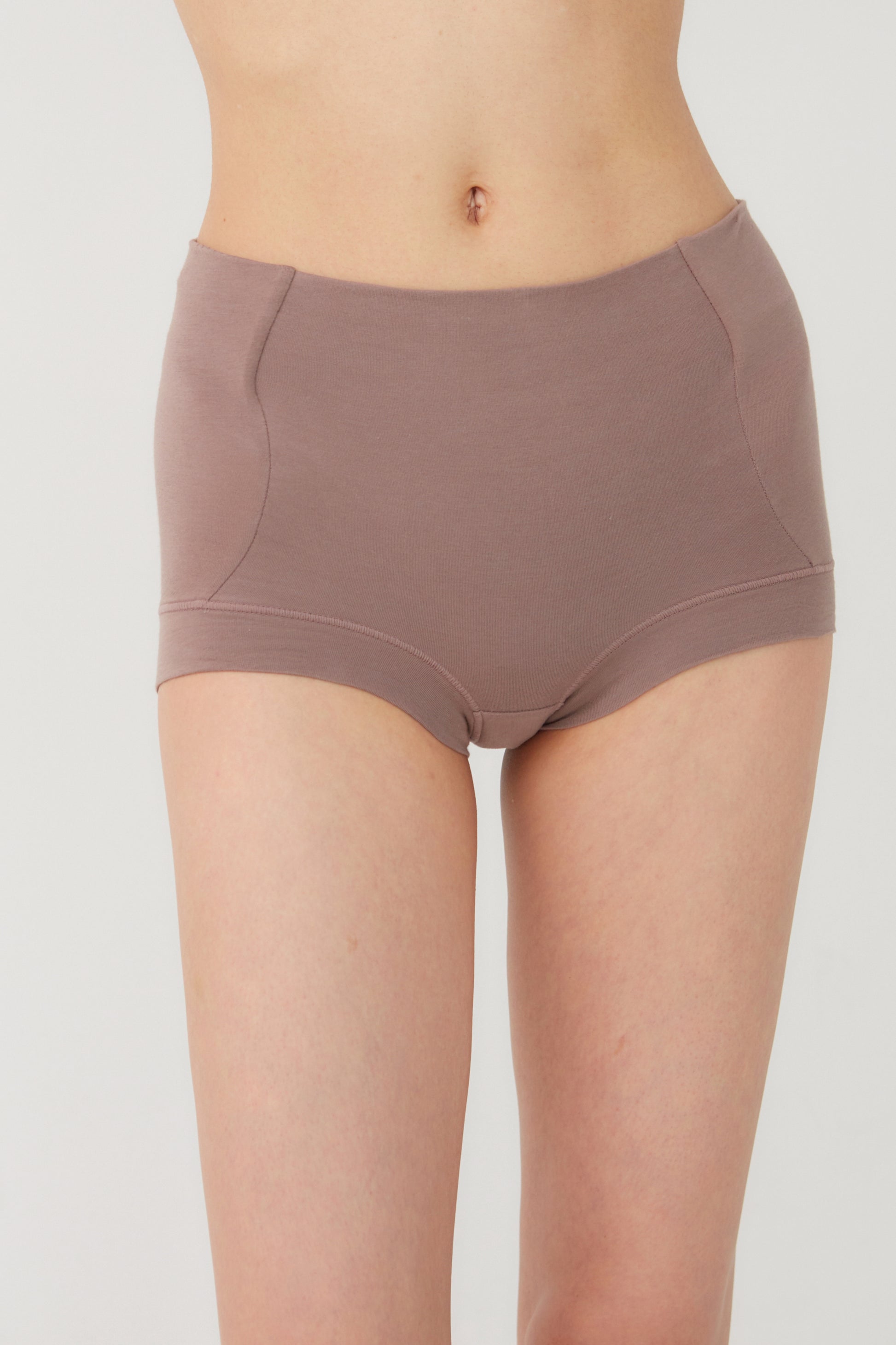 - ヒップを全体を優しく包み込むフルバックショーツです。ヒップの丸みを立体的にキープするためバックはシャーリング仕様にしています。